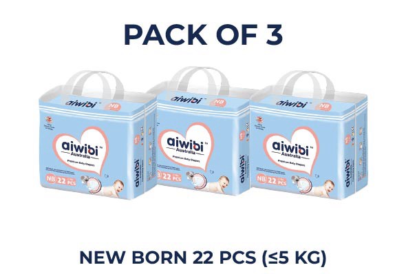 Aiwibi Australian Disposable Breathable Baby Diapers With Elastic Waistband NB22 Pack Of 3