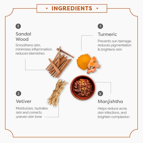 Brightens Skin: Packed with Turmeric & Sandalwood, the Face Wash effectively brightens the skin after every wash. It reduces dark spots and pigmentation, leaving your skin glowing.