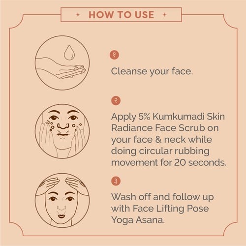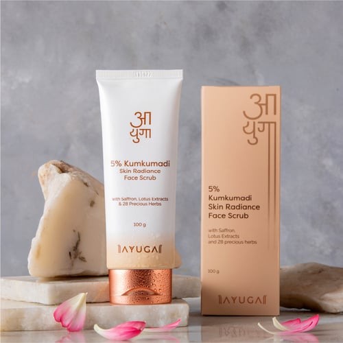 Makes Skin Radiant: The 5% kumkumadi skin radiance face scrub features the fusion of kumkumadi oil and 28 precious herbs that work effectively in cleaning and exfoliating your skin while bringing out its natural radiance.