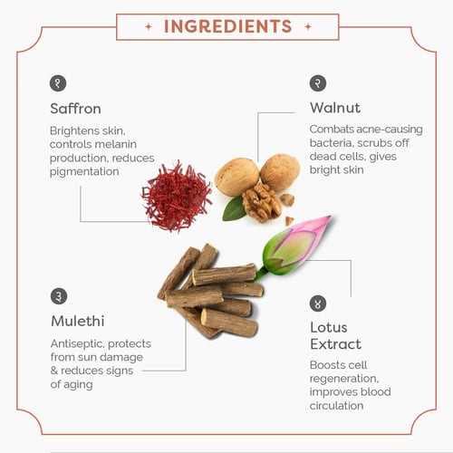 Deeply Exfoliates Skin: Enriched with 5% kumkumadi oil and the goodness of walnuts, this ayurvedic face scrub gently exfoliates and cleanses skin by getting rid of dead skin cells and blackheads, giving you fresh and clear skin in minutes.