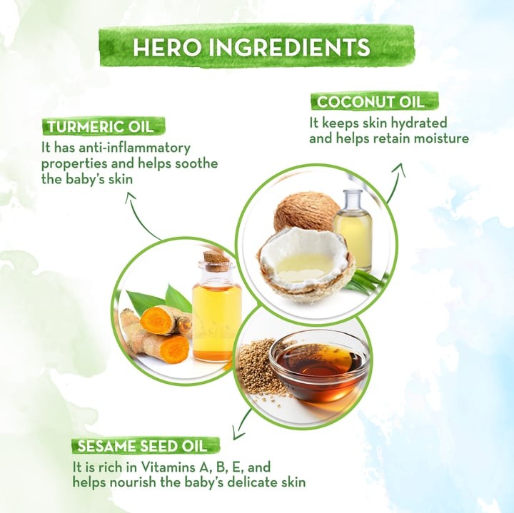 Crafted with Coconut Oil, I deeply moisturize your baby's delicate skin while keeping infections at bay. I am also enriched with Turmeric Oil which brings in anti-inflammatory benefits to protect your baby’s skin from irritation and itchiness, naturally.