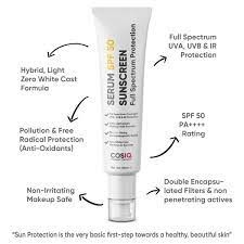 FEATURES: Zero White Cast, Non-Comedogenic Formula \ Full Spectrum UVA UVB & IR Protection \ SPF 50, PA++++ Rating \ Double Encapsulated Filters & Non-Penetrating Actives \ Non-Irritating and Make-up Safe