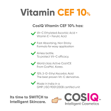 FEATURES: CEF features a synergistic antioxidant combination of 10% pure vitamin C (Ethylated ascorbic acid), 1% vitamin E (alpha-tocopherol), and 0.5% ferulic acid to enhance protection against environmental damage caused by free radicals that can contribute to atmospheric aging. CEF is now proven to reduce combined oxidative damage generated by UVA/UVB rays, ozone pollution, and diesel engine exhaust by up to 41%. In addition to antioxidant protective benefits, CEF improves signs of aging and photodamage, the appearance of lines and wrinkles, and the loss of firmness, while brightening skin's complexion.