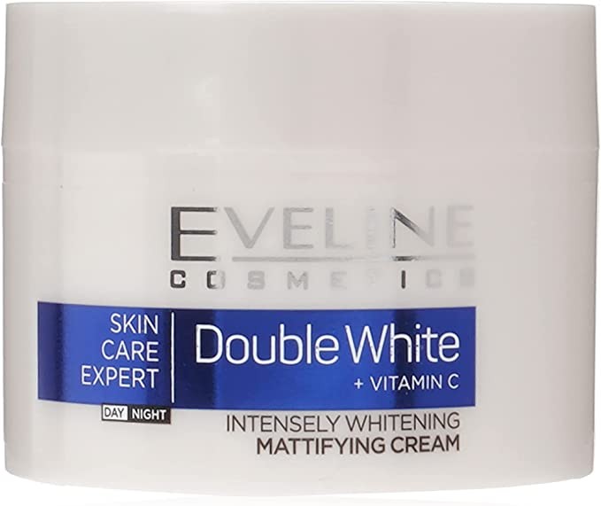 Eveline Skin Care Expert Double White SPF 20 Day and Night Cream is made with innovative formula combines the richness of vitamin C with the power of the advanced whitening technology, visibly reducing discolouration and freckles. The cream leaves skin brighter, matt and velvet smooth. It provides concentrated, whitening daily care of all types skin, including dry and sensitive skin. Ideal for night and day.