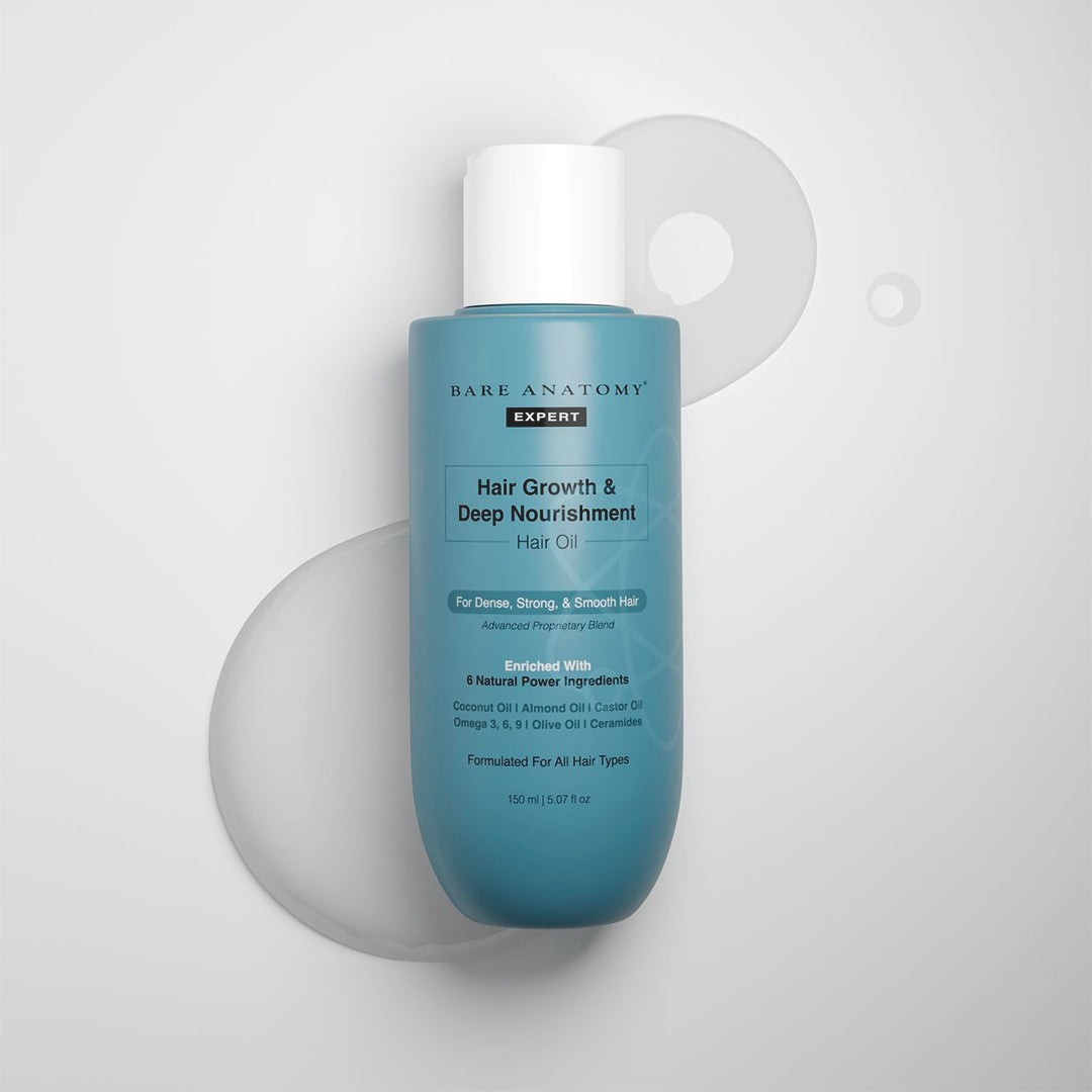 Enriched with the Advanced Proprietary scientific blend of 7 highly effective ingredients, the Bare Anatomy EXPERT Hair Growth & Deep Nourishment Hair Oil is all you need for soft & smooth hair with visibly improved hair density. In addition, it also hydrates and retains moisture in your hair removing dryness and frizziness post wash.