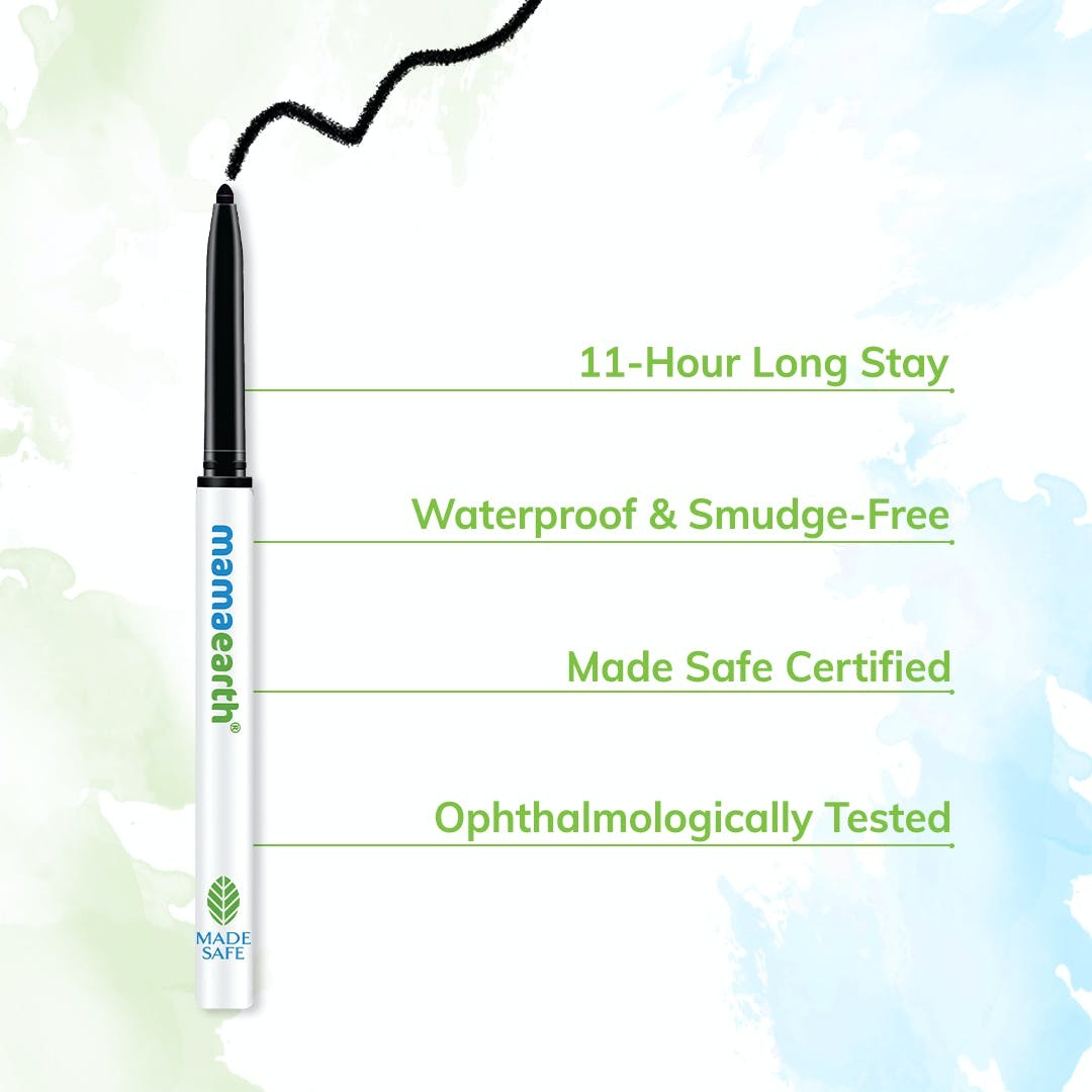 Let your eyes do all the talking with the Mamaearth Charcoal Black Long Stay Kajal. Waterproof & smudge-free, the Kajal glides on effortlessly, adding a glossy sheen and a rich color that stays for 11 hours. Not only is the Kajal long-lasting, it is also crafted with the most soothing natural ingredients like Chamomile to give your eyes both color and care. It is also India’s first Made Safe certified Kajal, which means that it contains no toxins or harmful chemicals.