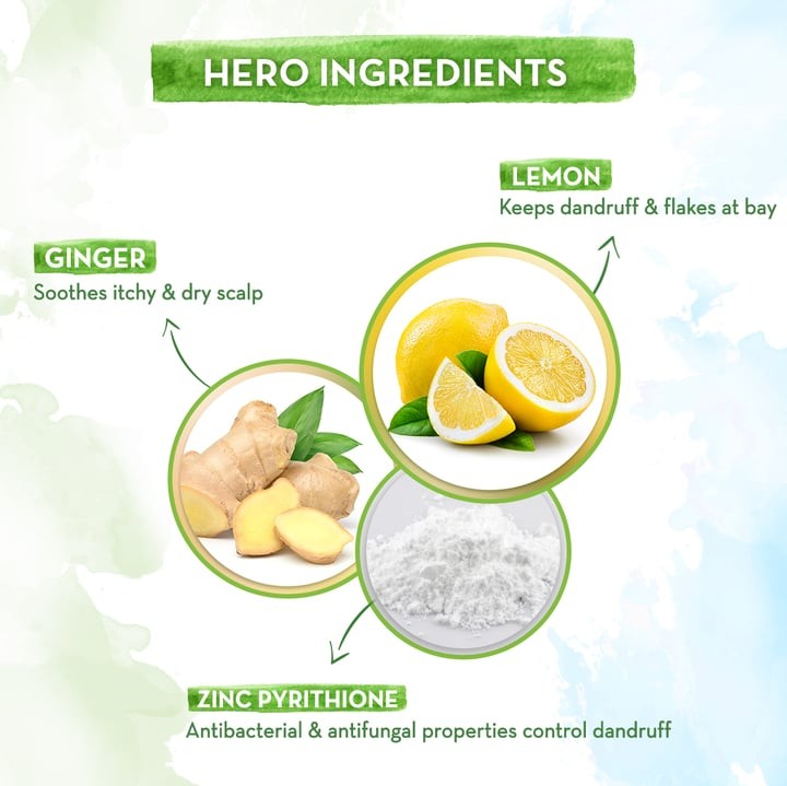 Got an itchy & flaky scalp? Time to go tough on dandruff with Mamaearth Lemon Anti-Dandruff Shampoo. Crafted with the natural goodness of Lemon & Ginger, the shampoo gently cleanses flakes & excess oil from your scalp, keeping you 100%* dandruff and itch-free. Lemon has anti-fungal properties which help combat dandruff and Ginger soothes itchiness & irritation. It also contains Zinc Pyrithione, another power-packed ingredient that is proven to limit fungal growth and prevent dandruff. The best part? Our Lemon Anti-Dandruff Shampoo does all this without drying out your tresses, making them softer & shinier. And it’s Made Safe certified which means no toxins or harmful chemicals, just nature’s goodness.