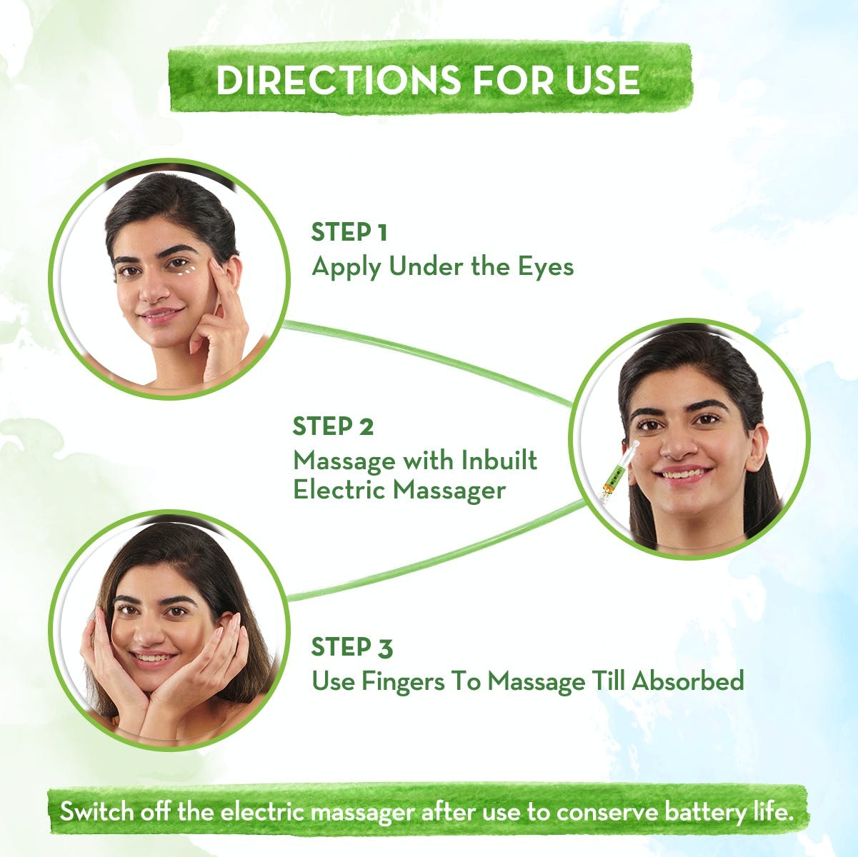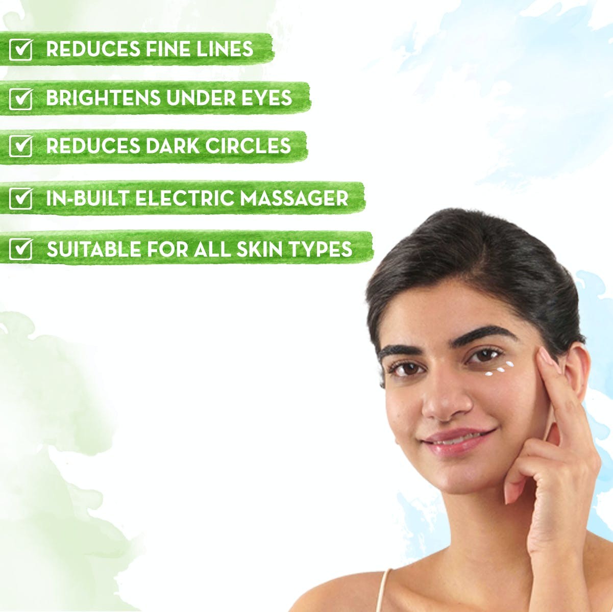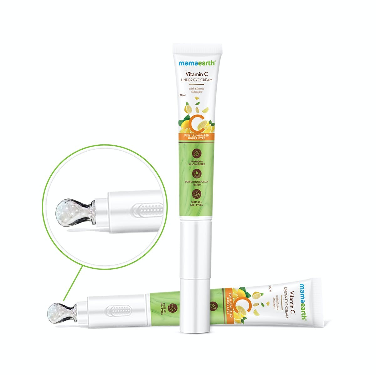 Constantly bringing innovation to our skincare products, Mamaearth now introduces one of its kind Under Eye Cream with an in-built electric massager. Coupled with a natural formulation of Vitamin C, Gotu Kola and Niacinamide, this Under Eye Cream will effectively depuff your under eyes and improve blood circulation thus helping in better absorption of the ingredients. The natural goodness of Vitamin C and Gotu Kola is deeply hydrating, reverses sun damage and boosts collagen. Niacinamide, a powerhouse of Vitamin B3+, helps reduce fine lines and wrinkles.
