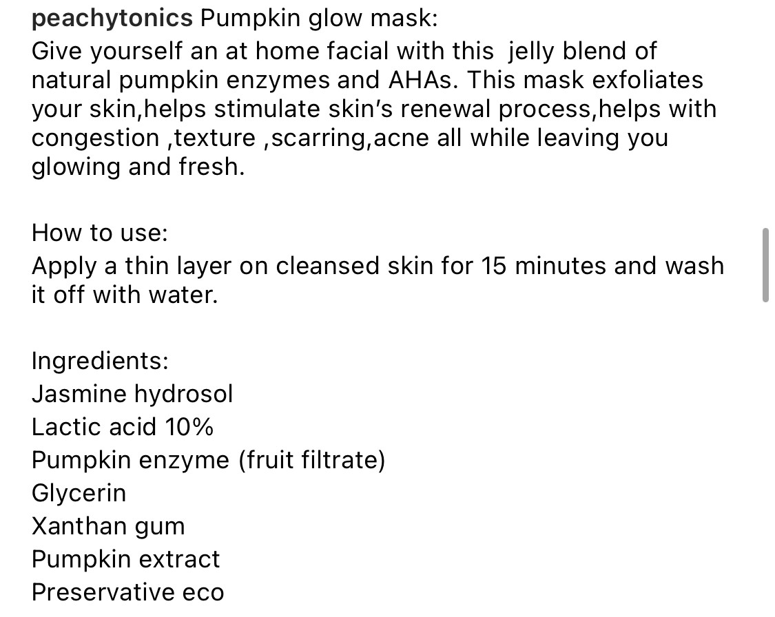This face mask is a blend of lactic acid,pumpkin enzymes and pumpkin extract that mildly exfoliate your skin to get rid of dead skin cells and reveal clearer and glowing skin