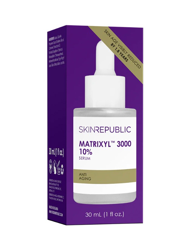 A combination of peptides, palmitoyl-tripeptide-7 and palmitoyl-oligopeptide. Targets signs of aging and helps to stimulate the production of collagen and elastin. Essential proteins in the skin that help retain elasticity, strength and firmness. Matrixyl™ 3000 supports the activation of the cutaneous repair process, and in particular at the level of the fragile and UV-damage prone papillary dermis.