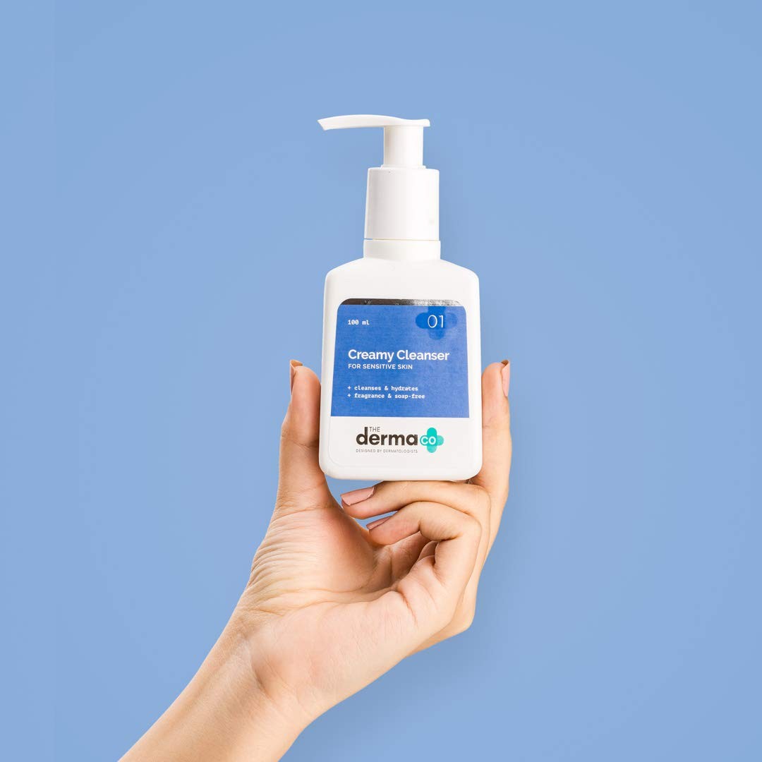 It's time to give your sensitive skin a break from over-dryness! The Derma Co. Creamy Cleanser cleanses, purifies, and moisturizes the skin without irritation or over-drying.