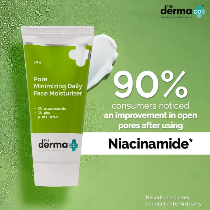 Niacinamide and p-REFINYL, two ingredients in the Pore Minimizing Daily Face Moisturizer, make it the best product on the market for minimizing enlarged pores. Skin is nourished: Goodbye, dry. The Pore Minimizing Daily Face Moisturizer will always keep your face hydrated and nourished. Cuts Down on Extra Sebum The Pore Minimize Daily Face Moisturizer, which is Niacinamide-powered, regulates excessive sebum production for oil-free skin.