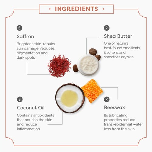 Reduces Pigmentation: Saffron in the Lip Balm controls melanin production to reduce pigmentation and dark spots on the lips. With this, it brightens the lips to reveal they are natural colours.