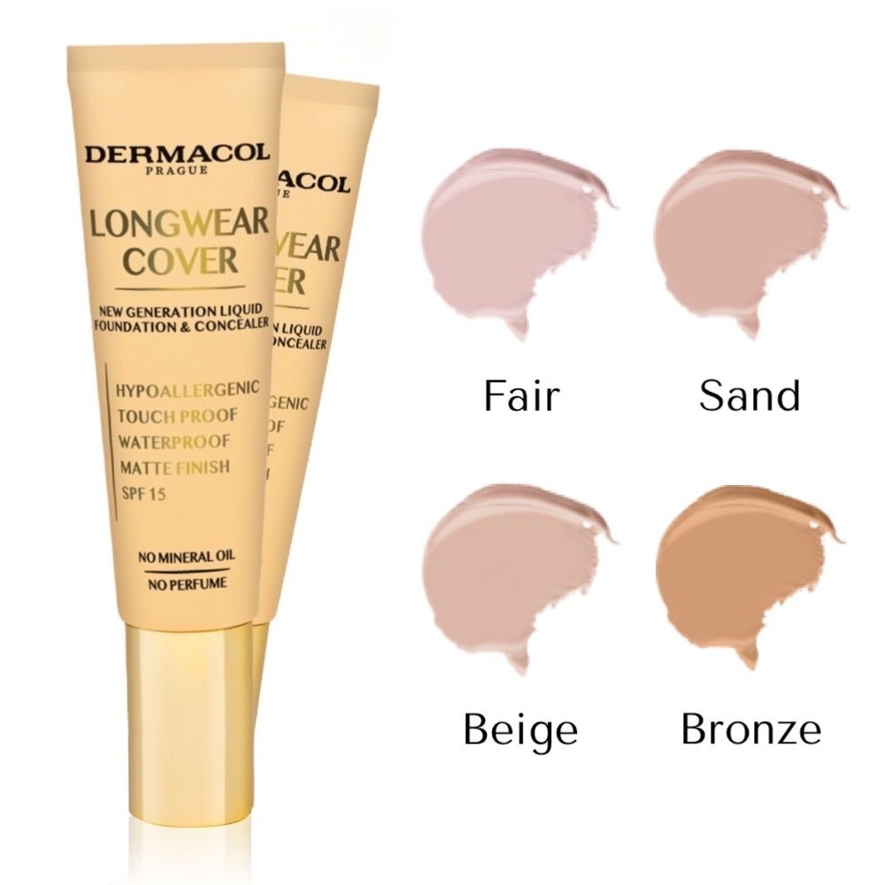 Its light, fluid formula is very easy to apply and does not leave a feeling of a heavy foundation that weighs on your skin. Yet, the foundation provides high coverage and can be used not only as a conventional foundation over the entire face, but also as a concealer to cover smaller skin imperfections. Longwear Cover is suitable for all skin types (including dry skin), it is hypoallergenic and contains SPF 15. It contains vitamin E (that protects your skin from damage caused by free radicals) and tiny particles of jojoba wax that dissolve when they come into contact with the skin, creating a protective film that makes Longwear Cover waterproof.