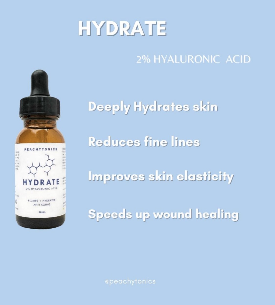 Made with 2% low molecular weight Hyaluronic acid. This serum will deeply hydrate your skin without leaving it feeling sticky or tacky.