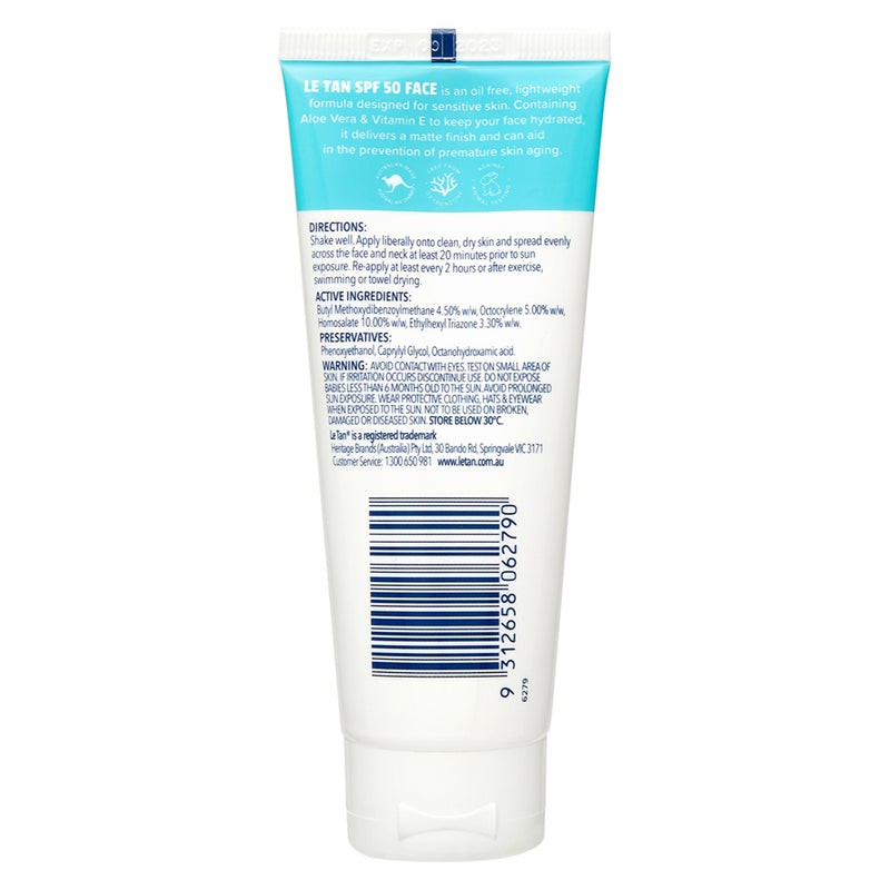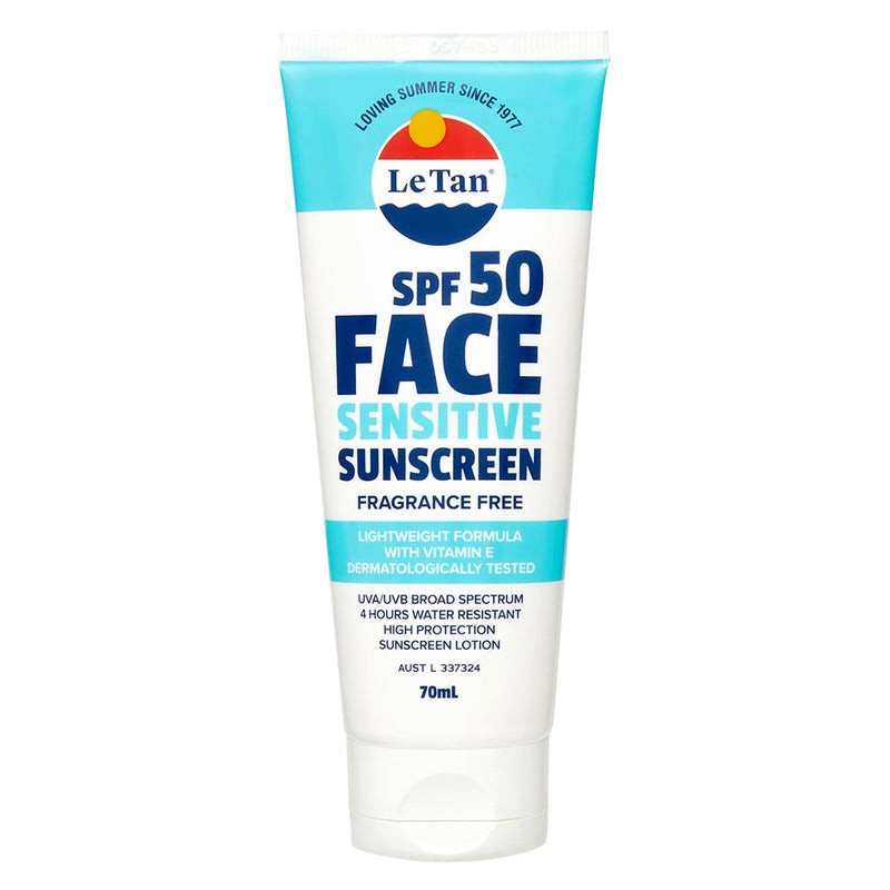 50 face sunscreen with UVA & UVB broad spectrum protection, unscented formula designed for sensitive skin.