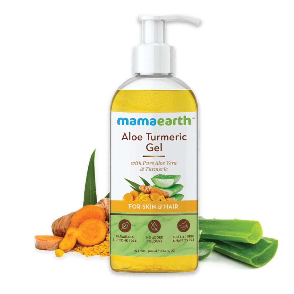 For ages, Aloe Vera & Turmeric have been a part of skin & hair care regimes for their medicinal benefits. Mamaearth's Aloe Turmeric Gel combines their goodness with Vitamin E in a multipurpose product. 100% Pure Aloe Vera derived from aloe plant deeply hydrates skin & hair. It soothes sunburnt skin, calms rashes, heals wounds, and reduces irritation. Naturally rich in vitamins, it slows down ageing and reduces breakouts. It also helps fight dandruff and itch, and moisturises hair from root to tip to reduce frizz. Turmeric is a powerful antioxidant that nourishes skin, fights ageing & breakouts, has powerful antibacterial action, and promotes overall health of skin & scalp. Vitamin E nourishes & protects skin & hair. Slather this gel from head to toe to moisturise skin & hair, to soothe sunburnt or shaved skin, and to soften dry or frizzy hair. Mamaearth's Aloe Turmeric Gel is free of harmful toxins like Parabens, Mineral Oil, Silicones, etc.