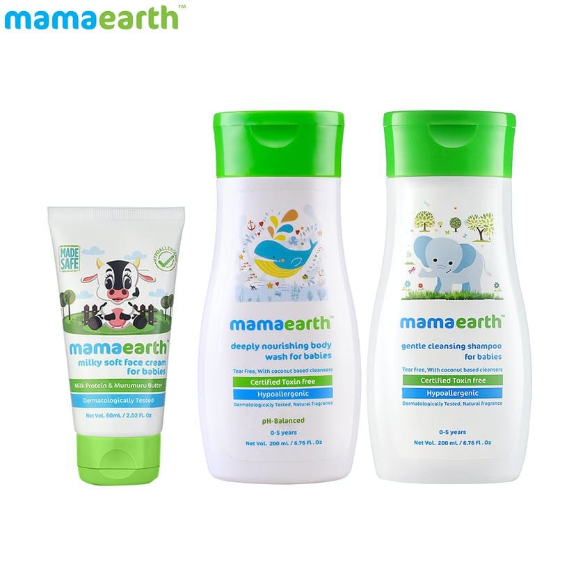 Your little one’s delicate skin needs everyday products that are specially formulated to suit their specific needs. Hi, I am Mamaearth Bathing Combo – a buddy for your little one. I have all the essential grooming products that your baby needs on a day to day basis for clean and supple skin. Whether be at home or on the go, I will make sure that I wash off the sweat, dirt & grime the everyday weather and play brings along. I will ensure that those yum cheeks are always soft & supple. All products in me are Madesafe certified and free of nasties such as SLS, paraben, sulfate, mineral oil, PEGs, phthalates, or artificial fragrances.