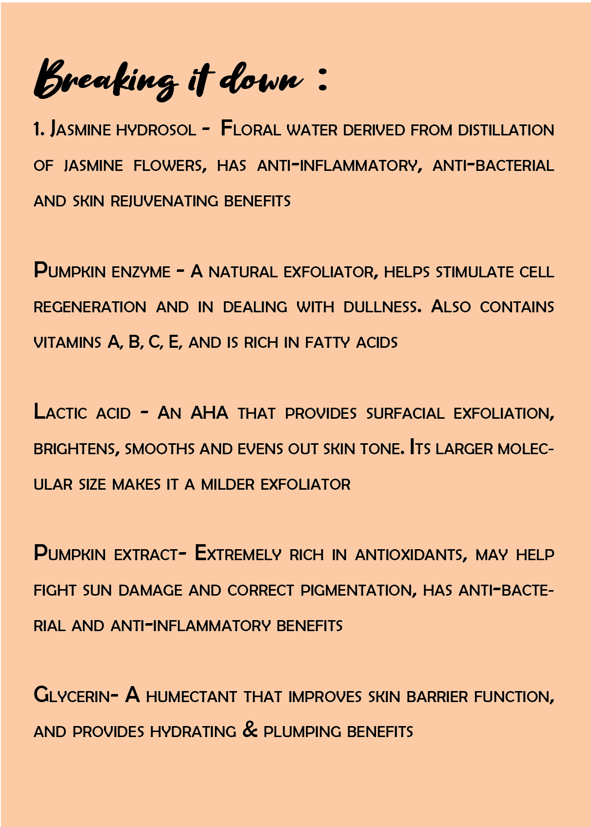 This face mask is a blend of lactic acid,pumpkin enzymes and pumpkin extract that mildly exfoliate your skin to get rid of dead skin cells and reveal clearer and glowing skin