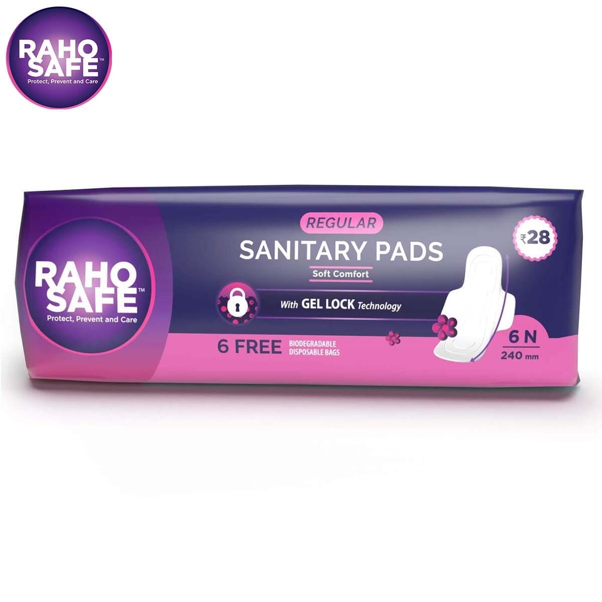 Raho Safe Sanitary Pad Regular (240MM) with Biodegradable Disposable Bags (Pack of 6)